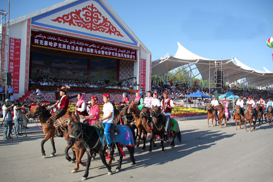 阿克塞哈薩克族自治縣地處甘、青、新三省(區(qū))交匯處,是甘肅省惟一一個以哈薩克族為主體的少數(shù)民族自治縣,有其獨特的地域特色和人文環(huán)境。阿克塞國際標(biāo)準(zhǔn)賽馬場及綜合體育場將濃郁的民族風(fēng)情與現(xiàn)代建筑相結(jié)合,是集賽馬、健身、體育運動為一體的綜合體育運動場所,占地面積20.88萬平方米,已完成投資4000萬元,建成可容納3000人的觀禮臺、全長1公里(10跑道)的標(biāo)準(zhǔn)賽馬道、600平方米的馬術(shù)表演場,充分體現(xiàn)了高水平、生態(tài)化、人文化的建設(shè)理念,是西部首個國際標(biāo)準(zhǔn)賽馬場,熱忱為八方游客提供賽馬、賽駝、跑馬、騎馬、馬術(shù)表演等民族特色濃厚的旅游項目。作為一個設(shè)施功能完善的綜合性民族體育場所,阿克塞賽馬場為全民健身活動的順利實施奠定良好的基礎(chǔ),同時成功地將賽馬等民族傳統(tǒng)體育項目納入地方文化旅游業(yè)發(fā)展體系之中,實現(xiàn)了文化搭臺,經(jīng)濟(jì)唱戲,有效地促進(jìn)了當(dāng)?shù)亟?jīng)濟(jì)、文化、旅游的共同發(fā)展和各民族間的文化交流。