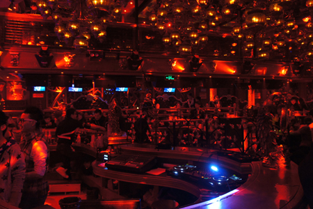 江蘇皇家 GD 酒吧以中國(guó)紅為基調(diào),中西方文化在此碰撞出典雅的火花。古典風(fēng)情元素與現(xiàn)代奢華元素的結(jié)合,立體空間與時(shí)空穿越的視覺(jué)沖擊,讓來(lái)此放松的人們?cè)谏萑A中體驗(yàn)別樣的風(fēng)情。
