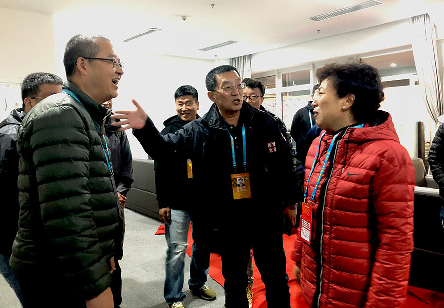 演出結(jié)束后,欒市長攜青島市諸領(lǐng)導慰問了開幕式文創(chuàng)團隊,總導演王建鋼向領(lǐng)導匯報了策劃創(chuàng)意和數(shù)字媒體團隊-時空文化、現(xiàn)場音響導演中央電視臺劉一兵老師、設(shè)備保駕團隊三基音響及“貝塔斯瑞”。欒市長總結(jié)說:演出真的很棒!領(lǐng)導很滿意!!在這么短的時間內(nèi),能有這么精彩的節(jié)目呈現(xiàn)給全省人民。一方面說明你們水平高,另外說明大家很有凝具力有干勁。我代表市政府、代表主委會表示向各位表示感謝!