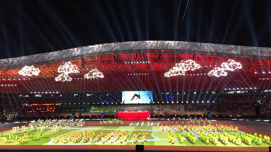 設(shè)備之更:現(xiàn)場燈光、音響、視頻、威亞設(shè)備使用數(shù)量更多的一次省運開幕式。
