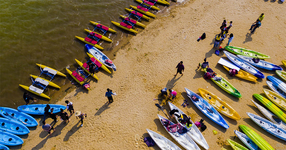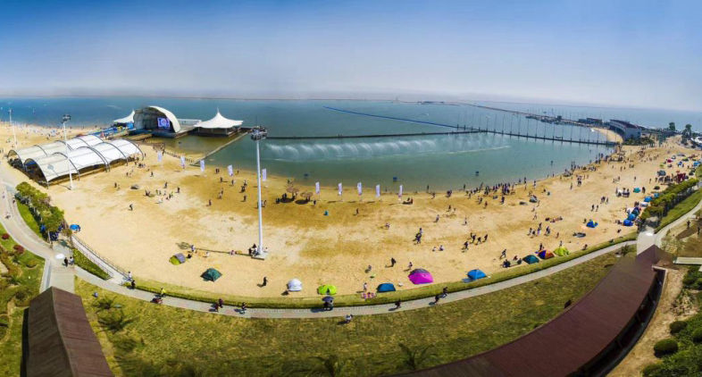 上海碧海金沙水上樂園總投資50億元,是目前中國更大的人造沙灘海濱浴場,也是上海一處碧波蕩漾的藍(lán)色海域,占據(jù)了奉賢區(qū)東海杭州灣10公里長的海岸線,擁有水域面積65萬平方米,8萬平方米的沙灘面積。