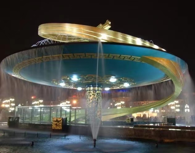 從空中俯瞰整個廣場,可以看到一個巨大的太極圖,圖的中部曲線將廣場分為兩部分,東廣場是個下沉式廣場,西廣場是個噴泉景觀,中間則是太陽神鳥圖案。廣場四周是12根以綠色為主、配以金色的文化柱,以強烈的視覺沖擊力和感染力展示古蜀文化。廣場的北面是氣勢恢弘的水景噴泉,在聲、光、電、水的組合下,噴泉將根據(jù)音樂的節(jié)奏,形成各種水景給廣場注入鮮活的靈氣。