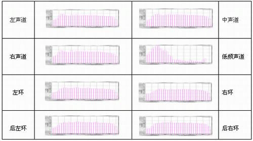 | 左、中、右主聲道峰值聲壓級(dB) | 103 | 大于103 | 大于103 | 大于103 | 大于103 |