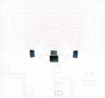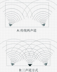 一,從聲音效果上,能夠使聲音的密度感更好,聲場更加寬闊,能夠很好的營造出臨場感和現(xiàn)場氣氛。傳統(tǒng)模式和三聲道模式的聲場比較示意如下左圖(方框區(qū)域代表房間,曲線代表聲波的傳輸):從下左圖明顯可以看到,采用三聲道方式后,聲場的均衡度大大增加,聲音的能量也得到了增強。采用該工作方式后,不但歌唱時倍感輕松,現(xiàn)場感更好,更可靈活切換中間聲道工作模式,使其適應(yīng)獨唱、合唱、清唱、電影、DISCO等不同工作模式。