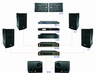 主音箱采用大動態(tài)2分音4單元KTV音箱,2只10"單元,兩只25mmPEI高分子復(fù)合膜高音單元,圓形寬指向性號角雙10"單元,動態(tài)大而低頻強勁,能夠獲得更好的聲場,適用于高要求的K歌包房系統(tǒng)。
