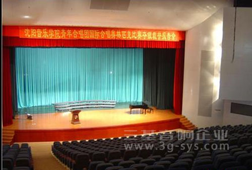 沈陽(yáng)音樂(lè)學(xué)院(南校區(qū))藝術(shù)學(xué)院音樂(lè)劇場(chǎng)建于2003年6月21日,建筑面積3900平方米,精裝面積約3600平方米,可容納觀眾1200人。 音樂(lè)劇場(chǎng)舞臺(tái)與觀眾席的比例為1:1,舞臺(tái)共設(shè)有5道幕?;瘖y間4個(gè),服裝室2個(gè),貴賓接待室1個(gè),臨時(shí)排練室1個(gè)。