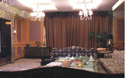 該項目于2009年12月24日正式開業(yè)迎賓。從7月份承接該項目以來,三基音響總部進行技術(shù)設(shè)計支持工作,天津辦事處現(xiàn)場全程跟進,一切安裝按照國家弱電標準及三基音響自身更嚴格的安裝標準實行。從吊裝件的預(yù)埋、音箱線的走位布線、音箱的更后安裝都進行現(xiàn)場指導(dǎo)。工程安裝完成后,天津辦事處三位應(yīng)用工程師經(jīng)過多日的精心調(diào)試,效果得到業(yè)主方及客戶的一致認可。