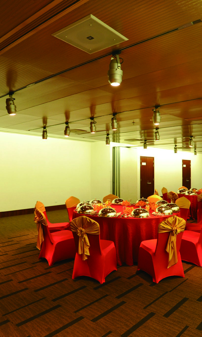 BT系列同軸音箱中的BT10/V在國家會議中心吊頂高度達到6米大中會議室應用較少的數量就能覆蓋整個場地并提供足夠的聲壓級及較好的音質效果。整個音響系統(tǒng)中和其它的音響產品配合通過數字媒體矩陣內的矩陣分區(qū)、均衡、增益、分頻、延時等各個參數的調節(jié)靈活處理并設置不同的場景來滿足各種討論、會議、酒會、宴會等各種方式的音響效果要求。