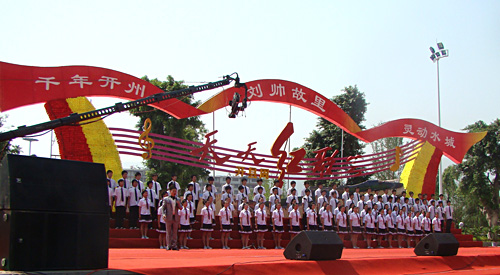 前期,重慶市開縣濱湖公園廣場歌聲嘹亮,彩旗飄揚。由開縣縣委宣傳部、縣文廣新局與重慶電視臺聯(lián)合打造的《天天紅歌會》開縣周紅歌節(jié)目正在這里錄制,此次紅歌會還在劉伯承將軍紀念館設(shè)立了第二會場,活動現(xiàn)場異?;鸨?。