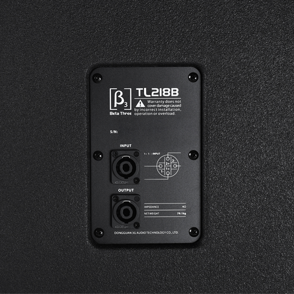 TL218B箱體上有機腳沉位及安裝支點,可疊加堆碼也可以通過選配安裝件,與TL210、TL212B、TL212、 TL215B系列音箱配套堆碼使用。套使用。