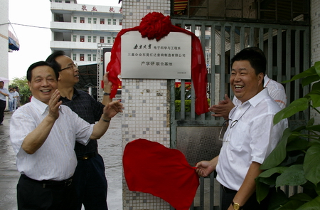 2008年7月30日10:00,由南京大學(xué)電子科學(xué)與工程系和三基企業(yè)――東莞市億達(dá)音響制造有限公司共同成立的“產(chǎn)學(xué)研”聯(lián)合基地揭牌儀式在三基企業(yè)東莞制造基地舉行.