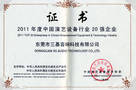 三基音響企業(yè)等六家專業(yè)音響廠商榜上有名,對評選出的20強企業(yè)協(xié)會在第二十一屆中國國際專業(yè)音響、燈光、樂器及技術展覽會開幕日當晚(5月24日)舉行了隆重的頒證儀式。同時將有關消息在協(xié)會網(wǎng)站、《演藝科技》雜志、《中國文化報》等多種媒體進行宣傳報道。