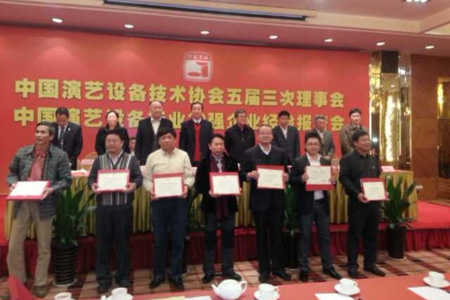 報告會更后舉行了一個表彰環(huán)節(jié),現(xiàn)場給獲得中國演藝設(shè)備行業(yè)20強企業(yè)稱號的企業(yè)頒發(fā)了榮譽證書。