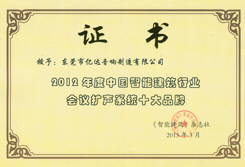 3月20日,2013中國(guó)智能建筑行業(yè)高峰論壇暨“2012年度中國(guó)智能建筑行業(yè)產(chǎn)品分系統(tǒng)十大品牌”頒獎(jiǎng)大會(huì)在京舉行。大會(huì)隆重的公布了榮獲“2012年度中國(guó)智能建筑行業(yè)產(chǎn)品分系統(tǒng)十大品牌”企業(yè)名單,三基音響企業(yè)集團(tuán)旗下的東莞市億達(dá)音響制造有限公司榜上有名,這是億達(dá)音響繼榮獲2012年國(guó)家文化出口重點(diǎn)企業(yè)后的又一項(xiàng)國(guó)家級(jí)榮譽(yù)。
