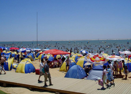 上海碧海金沙水上樂(lè)園總投資50億元,是目前中國(guó)更大的人造沙灘海濱浴場(chǎng),也是上海唯一一處碧波蕩漾的藍(lán)色海域,占據(jù)了奉賢區(qū)東海杭州灣10公里長(zhǎng)的海岸線,擁有水域面積65萬(wàn)平方米,8萬(wàn)平方米的沙灘面積。