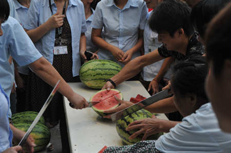 (哈哈,吃西瓜咯,都是自家人,大家果然都“很不客氣”哈?。?/P>