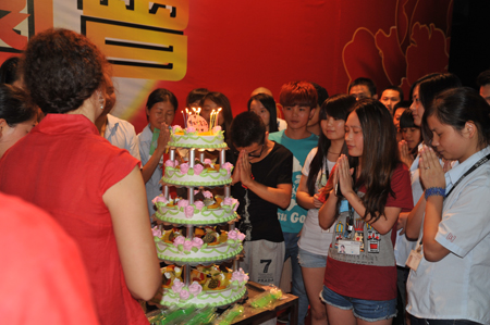 (哈哈,吃蛋糕咯,不過還是先虔誠地許個愿望吧?。?/P>