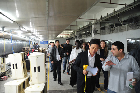 11月19日,三基音響企業(yè)迎來了由國家商務(wù)部組織的國際外貿(mào)訪問團一行30余人訪問團,訪問團主要由國際經(jīng)貿(mào)委官員和世界發(fā)展中國家的外貿(mào)官員代表組成,廣東省、東莞市兩級外貿(mào)部門官員陪同參觀,此行旨在對中國各行業(yè)代表性企業(yè)進行參觀訪問,以期深化在各領(lǐng)域的交流和貿(mào)易合作。