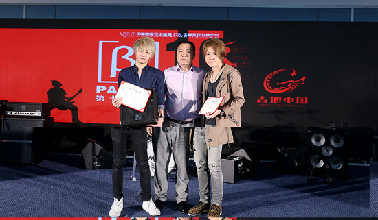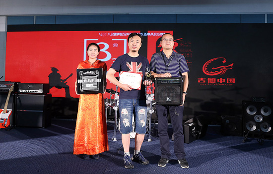 紀斌頒發(fā)Palm展第10屆貝塔斯瑞樂隊大賽電吉他組更佳原創(chuàng):黃立煒