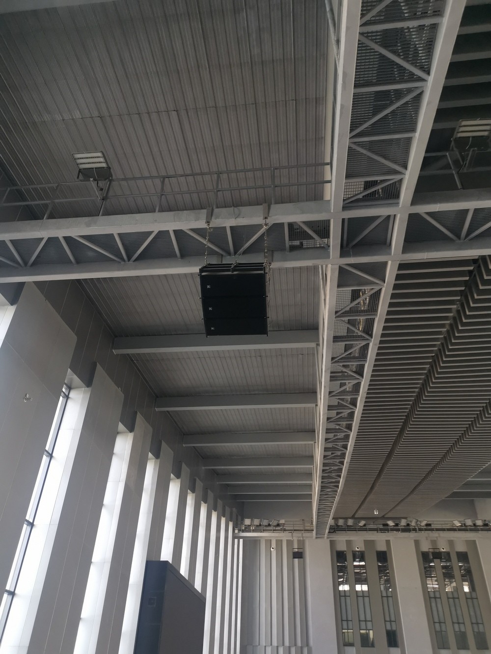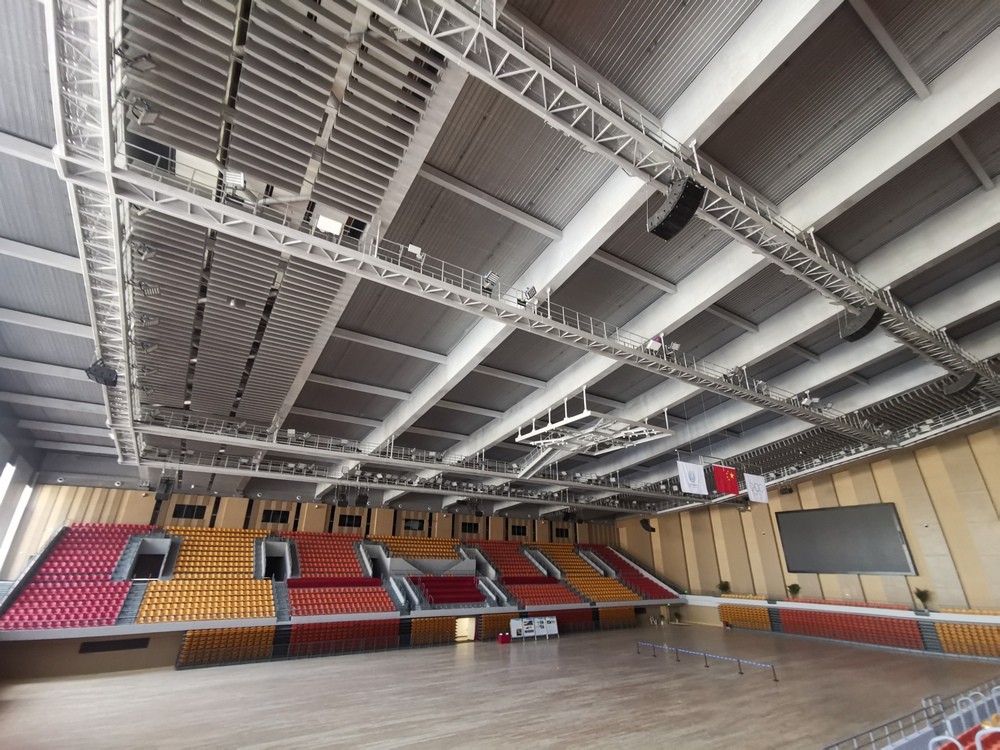 貝塔斯瑞為延安全民健身中心體育場打造的擴(kuò)聲系統(tǒng)中,選用了雙12寸線陣列擴(kuò)聲系統(tǒng),通過集中式的擴(kuò)聲安裝方式對各個擴(kuò)聲區(qū)域進(jìn)行擴(kuò)聲,讓揚(yáng)聲器的布置近似于點(diǎn)聲源,聲像位置較準(zhǔn)確,聲音清晰度好,且自然;相位差?。还芫€短,施工較容易;安裝、檢驗、維修方便;功放用定阻傳輸,頻帶寬,音質(zhì)好。