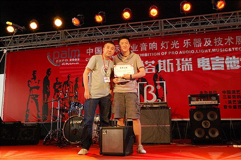 第十八屆中國國際專業(yè)音響.燈光.樂器及技術(shù)展覽會的重頭戲—Palm展第4屆貝塔斯瑞吉他大賽全國決賽部分已于29日下午結(jié)束。30日上午舉行了盛大的頒獎儀式,中國著名吉他手唐朝老五、劉麟、江建民、歇斯作為大賽顧問蒞臨現(xiàn)場為獲獎選手進行頒獎,來自四川的趙虎更終獲得全國總冠軍,他將同時簽約吉他中國,開展自己的演藝事業(yè)。