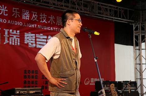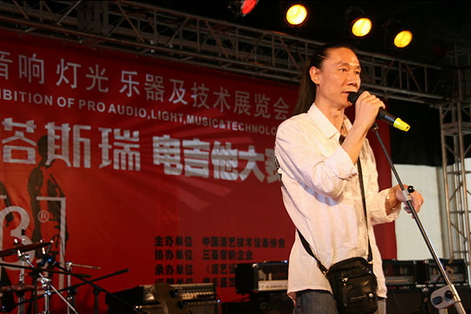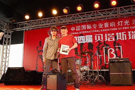 三基音響企業(yè)集團市場總監(jiān)鄭總為獲電吉他大賽季軍選手王勇頒獎