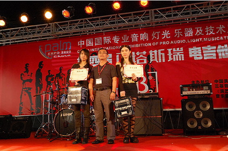 三基音響企業(yè)集團樂器市場總監(jiān)姚總為首次出現(xiàn)的兩位女選手頒獎