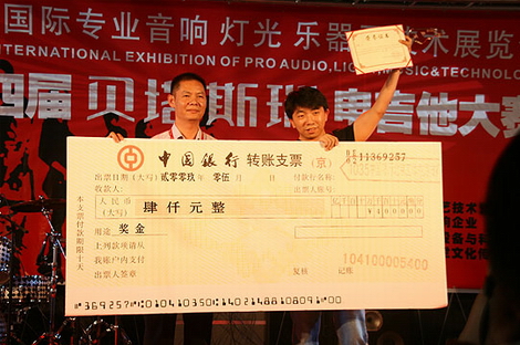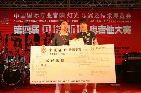 他獲得:大賽冠軍獎杯、榮譽證書和現(xiàn)金8000元并正式簽約吉他中國
