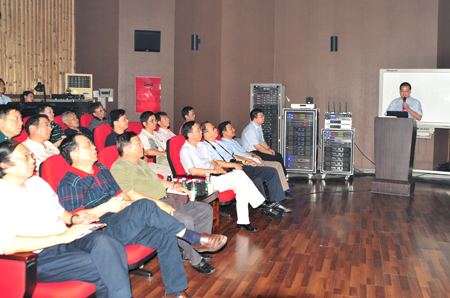 上海市演出行業(yè)協(xié)會(huì)會(huì)長(zhǎng)蔡正鶴在發(fā)言中對(duì)三基的熱忱招待表達(dá)了誠(chéng)摯的謝意,對(duì)三基的生產(chǎn)水平和產(chǎn)品給予了高度的評(píng)價(jià)。他說(shuō):通過對(duì)三基的參觀了解和試聽,認(rèn)為三基的技術(shù)和產(chǎn)品已經(jīng)達(dá)到較為先進(jìn)的水平。在國(guó)內(nèi),像三基這樣的企業(yè)不多見;三基人很努力,這些年在國(guó)內(nèi)開疆辟土扎穩(wěn)了根基,在國(guó)內(nèi)不少地區(qū)都有了分支銷售服務(wù)機(jī)構(gòu)。有北京、天津、廣州、深圳等十來(lái)個(gè),就唯獨(dú)沒有上海三基,他希望上海三基能早日誕生。蔡會(huì)長(zhǎng)風(fēng)趣幽默的發(fā)言迎來(lái)了綿綿不絕的掌聲……