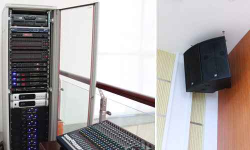 會議室則使用了ΣS215、ΣS212、ΣJ215、ΣB118D等專業(yè)音箱作為主擴,電子部分仍使用了UA系列專業(yè)功放、ΣC2600、PX系列等。