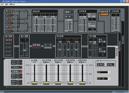 下圖3就是Kmix-3的操作界面,與電腦連接后,可以對(duì)各項(xiàng)參數(shù)進(jìn)行調(diào)整。6路話(huà)筒輸入,5路信號(hào)選擇,8路信號(hào)輸出,噪聲門(mén)、激勵(lì)、反饋抑制,所有功能齊全。