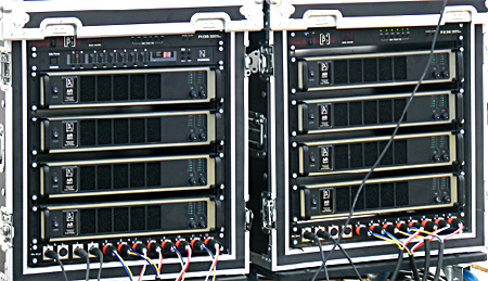 基于這些方面的綜合考慮,我們的預(yù)設(shè)計(jì)方案中采用“貝塔斯瑞”品牌的雙12寸線陣列音箱TLA121作為主擴(kuò)。共24只分別8只組陣列兩組、4只組陣列兩組,分別兼顧遠(yuǎn)近程和寬輻射角的聽(tīng)音,同時(shí),配置了LB218雙18寸超低頻音箱共8只作為系統(tǒng)的低頻擴(kuò)展。 舞臺(tái)返聽(tīng)則選用雙12寸高聲壓全頻專業(yè)返聽(tīng)揚(yáng)聲器212M/86,返聽(tīng)角度50°,指向性80°×60°。