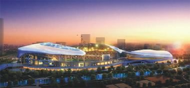 新落成的葫蘆島體育中心是由一座智能化的體育館和一座現(xiàn)代化的體育場(chǎng)和游泳館組成。場(chǎng)館中間有三個(gè)連廊,其實(shí)是一體。體育館的造型不是鳥(niǎo)巢,從空中鳥(niǎo)瞰更像是“貝殼”。