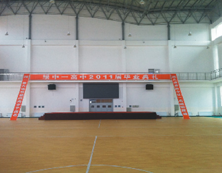 兩個場館在2011年6月進行了擴聲系統(tǒng)建設(shè)公開招標,“貝塔斯瑞”品牌擴聲系統(tǒng)成功中標?!柏愃谷稹奔夹g(shù)團隊為綏中一高兩個場館分別設(shè)計了一套標準易用的擴聲系統(tǒng)。體育館系統(tǒng)主要使用了“貝塔斯瑞”O(jiān)NAX流動演出系統(tǒng)的T15F、T18W音箱組合進行固定安裝使用,以滿足館內(nèi)進行體育活動及演出活動兼顧的功能需求。