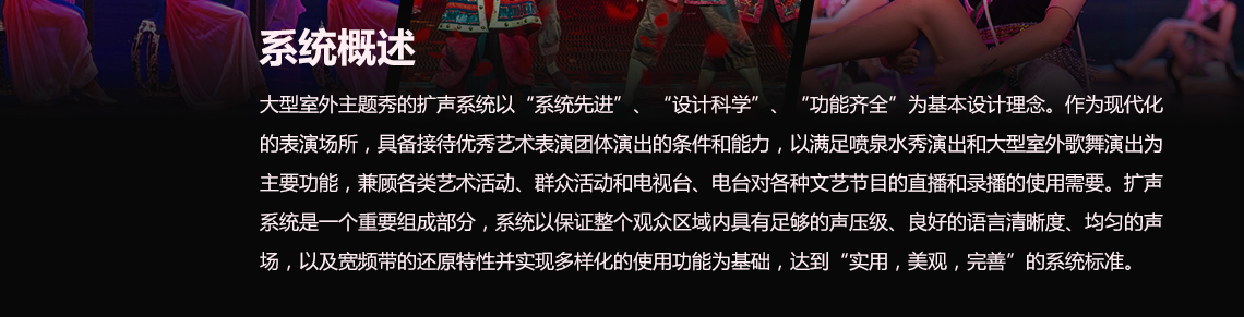 要求揚聲器對觀眾區(qū)的直達聲覆蓋均勻,避免過多重復(fù)造成聲干涉及影響清晰度,同時各揚聲器系統(tǒng)到達觀眾的聲音盡量有較合理的方位感,盡可能避免聲音從后方,側(cè)方來的感覺,要求語言擴聲清晰宏亮,有較高的傳聲增益,音樂重放時要求聲音豐滿自然,清晰亮麗。 | 在方案設(shè)計和設(shè)備的選擇上,應(yīng)注重系統(tǒng)功能的實用性。先進的技術(shù)應(yīng)當(dāng)有利于提高使用者的工作效率和設(shè)備的使用價值,從而賦予產(chǎn)品以更高的性能價格比。 | 系統(tǒng)的高可靠性是對系統(tǒng)功能強有力的保證。不僅有技術(shù)成熟、先進的可靠產(chǎn)品,還必須有多年豐富的工程設(shè)計和施工經(jīng)驗,保證整個系統(tǒng)為一個穩(wěn)定可靠、經(jīng)久耐用的系統(tǒng)。 |