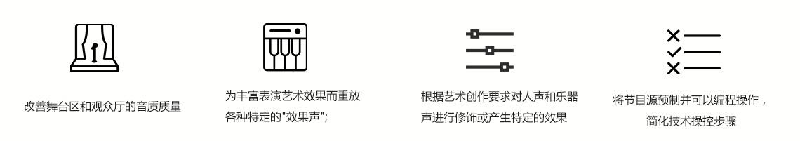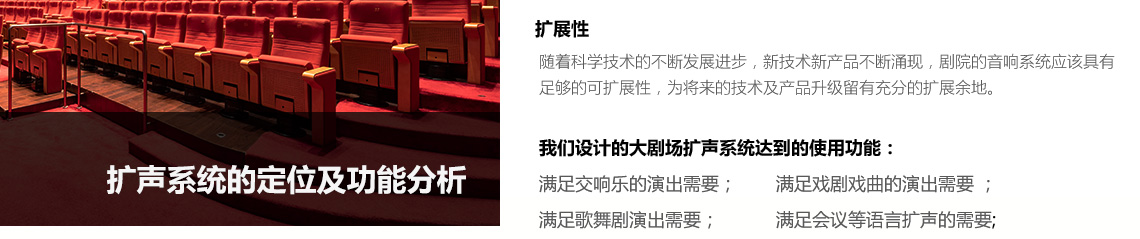 天花頂效果聲揚聲器選用SAK212全頻音箱6只;池座、樓座效果聲揚聲器選用SAK208全頻音箱,另配低頻效果聲揚聲器選用SAK118B低頻音箱。